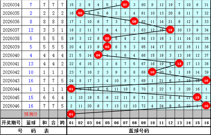 蓝球推荐:第047期历史同期开奖中,蓝球开出频次分别为:04、05、08、13出现0次,02、03、10、11出现1次,01、06、07、09、12、14出现2次,16出现3次,15出现4次,今年同期关注蓝球号码01。