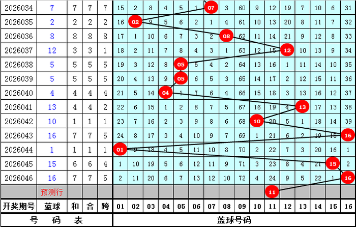 蓝球尾数分析:最近7周星期二开出4个蓝球尾数,重复蓝球尾数明显活跃,本周星期二注意蓝球尾数为近期热码尾数,参考蓝球11。
